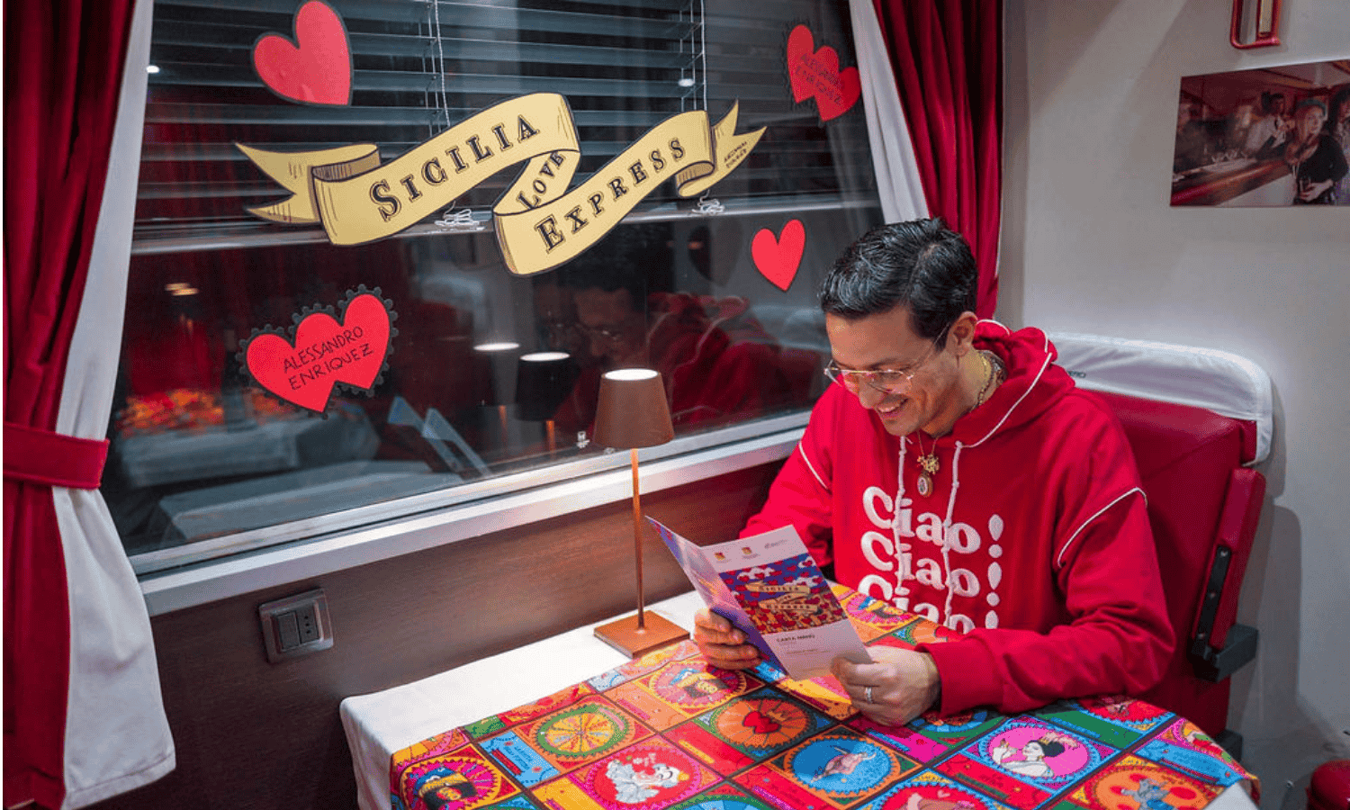 Per il secondo anno consecutivo Alessandro Enriquez firma con la sua creatività il Sicilia Express. Un progetto che supera il concetto di decorazione per diventare un vero manifesto del suo pensiero creativo, dove il viaggio si trasforma in esperienza emotiva e collettiva.